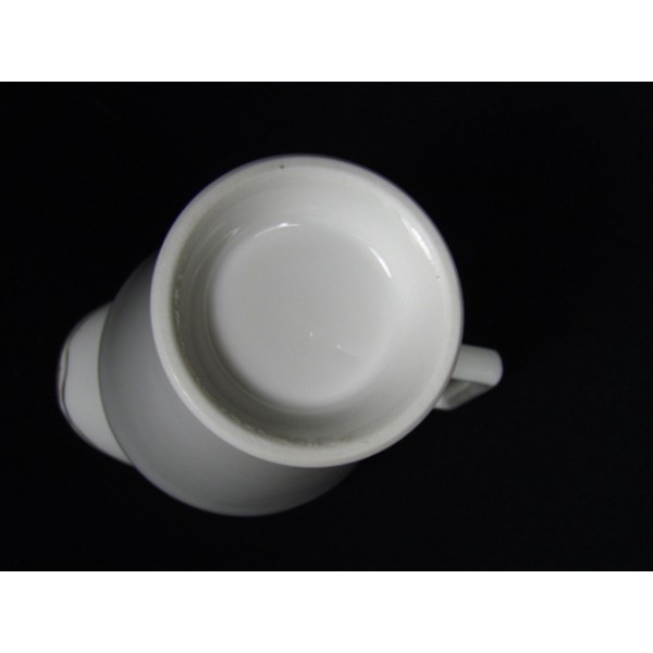 Dimensions : verseuse hauteur max 23,5 cm, envergure max 21 cm, contenance 1L; sucrier hauteur max 19 cm, envergure max 18 cm; pot à crème hauteur max 15 cm, envergure max 13 cm, contenance 0,3l, tasses diamètre max 6,6 cm, conteance 10 cl, diamètre soucoupes 13 cm.