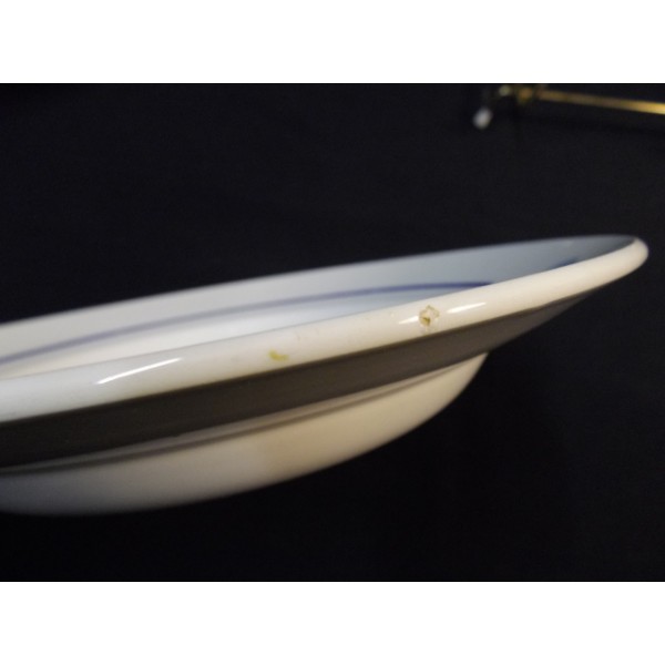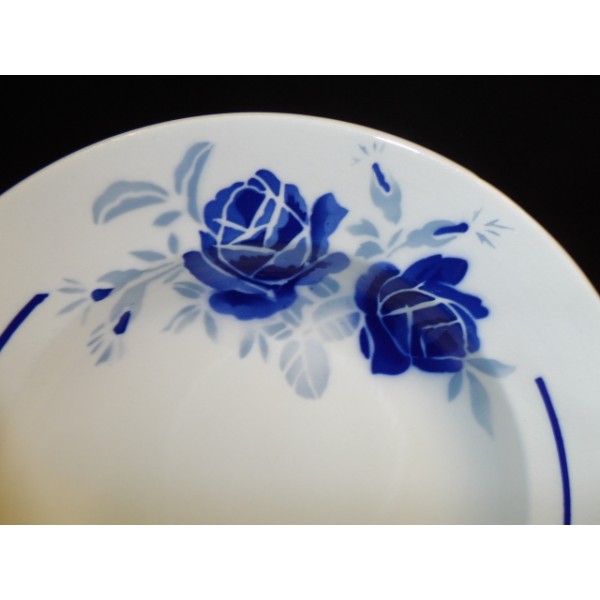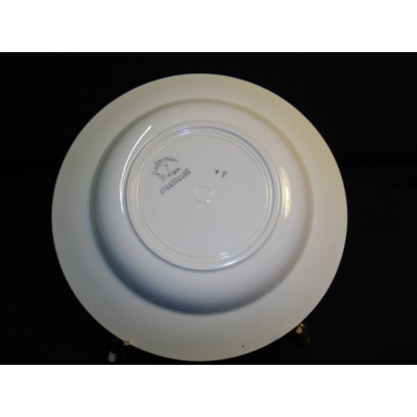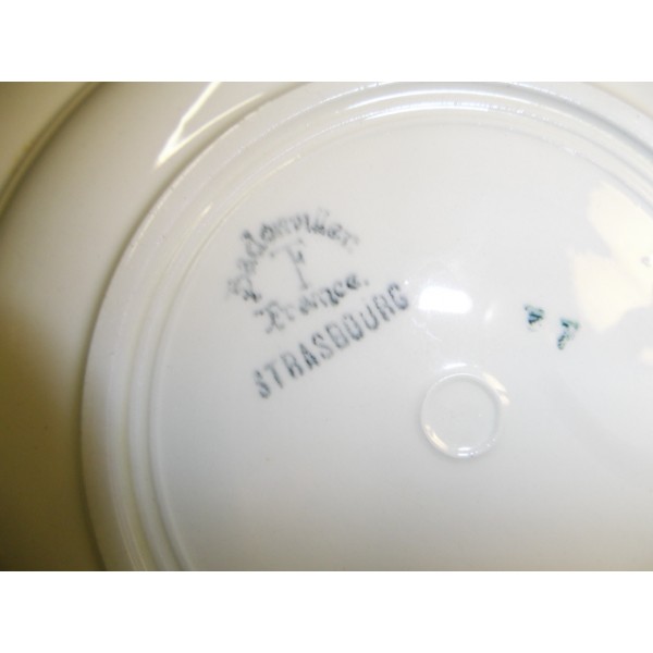 Assiette creuse en faïence estampillée Badonviller France, modèle Strasbourg, décor bleu, vers 1930.