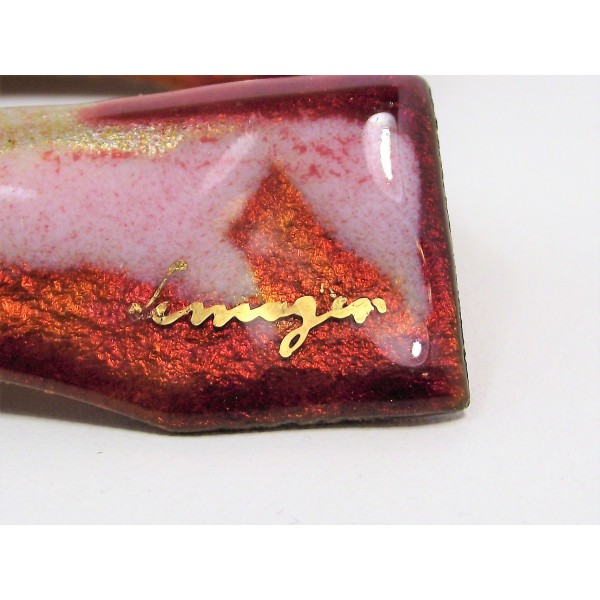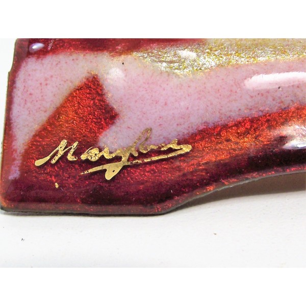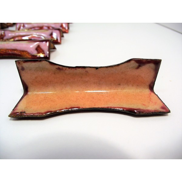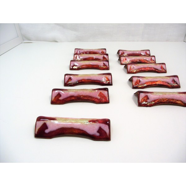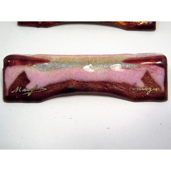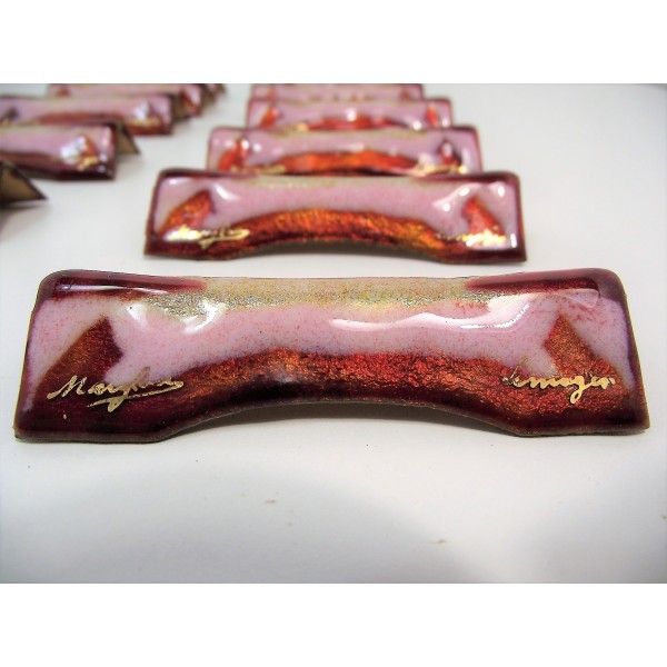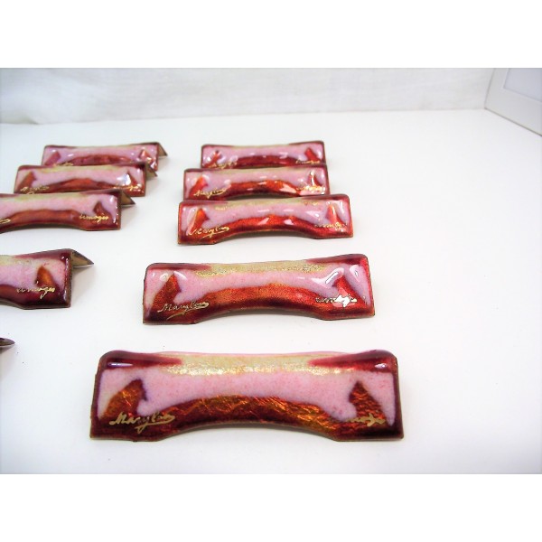Série de 12 portes-couteaux, émaux de Limoges, signés Marylou (Fauvet) Limoges, couleurs rouge/rose/doré.