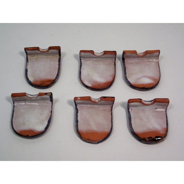 Série de porte-couteaux en terre cuite émaillée, forme pupitre.
