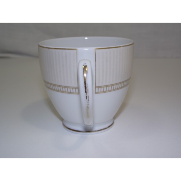Tasse à thé en porcelaine de Limoges pour la maison Guy Degrenne, modèle "Jour de Venise", couleur champagne et blanc.