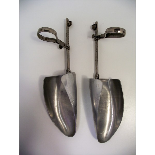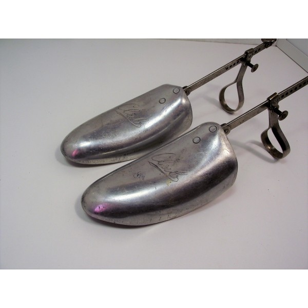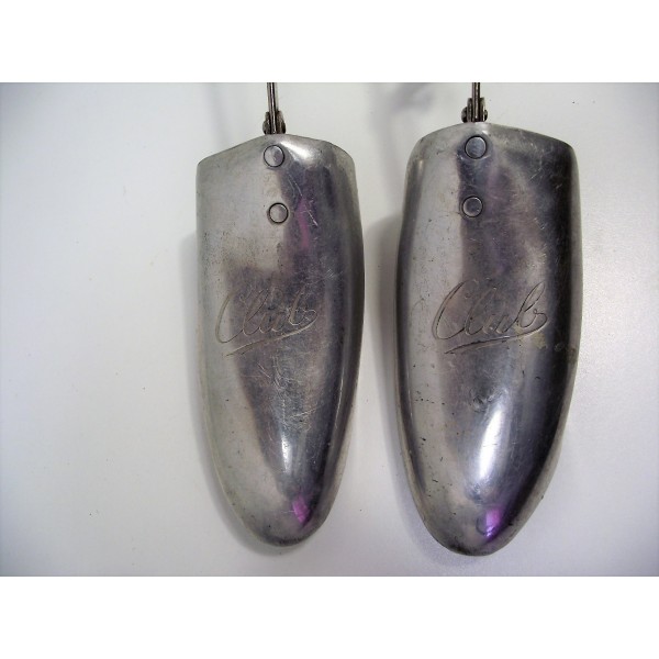 Paire d'embauchoirs en aluminium anciens de marque club, taille 4, pliant.