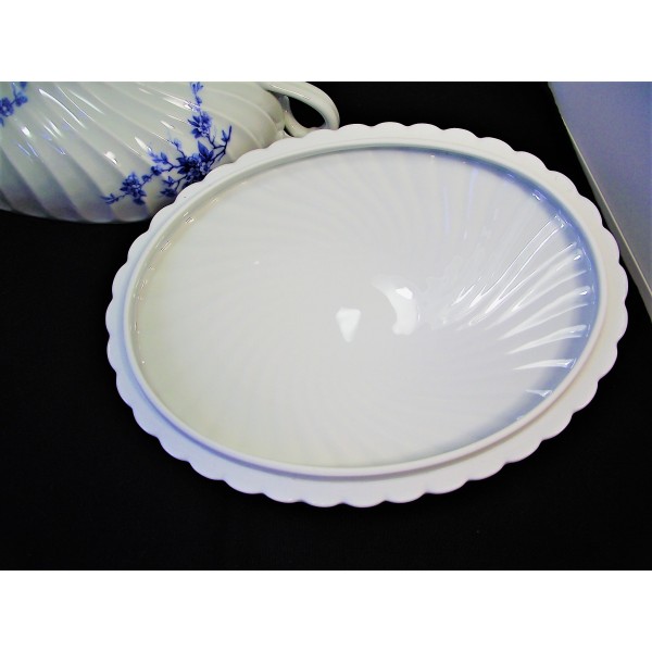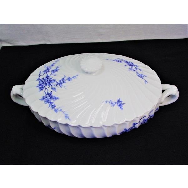 Légumier ou soupière en porcelaine fine de la maison Haviland à Limoges, modèle torse décor cerisier bleu, estampillée.