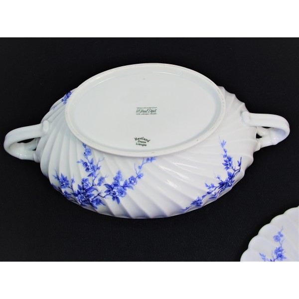 Légumier/soupière porcelaine Limoges Haviland torse cerisier bleu