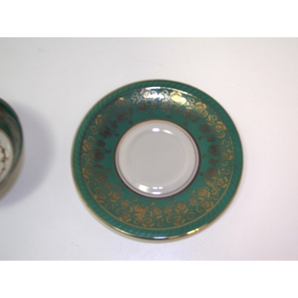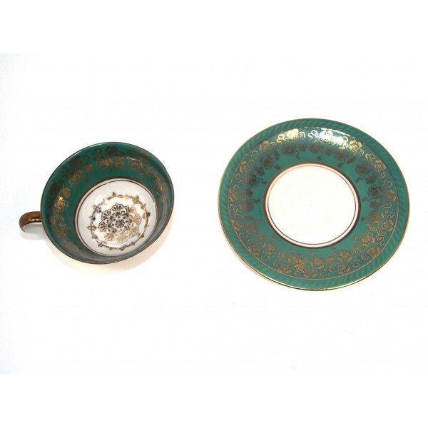 Tasse à café en porcelaine de Saxe décor vert et doré