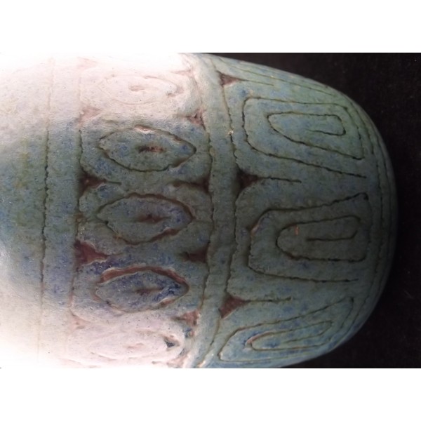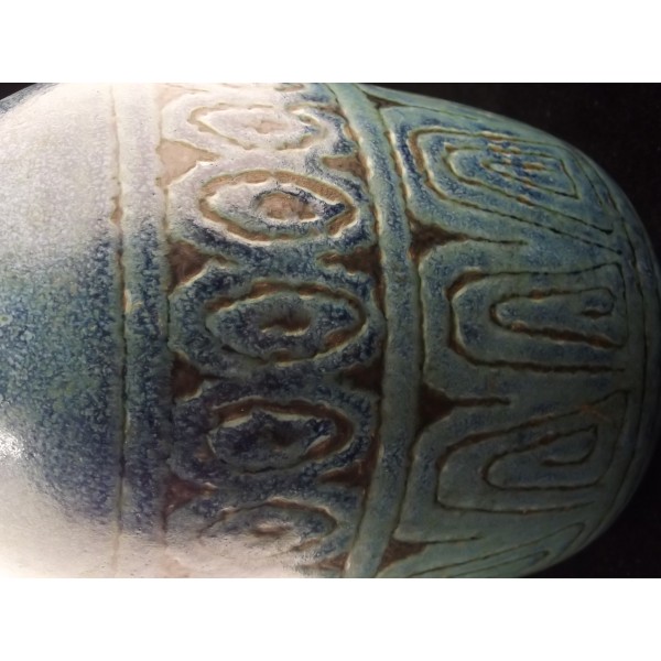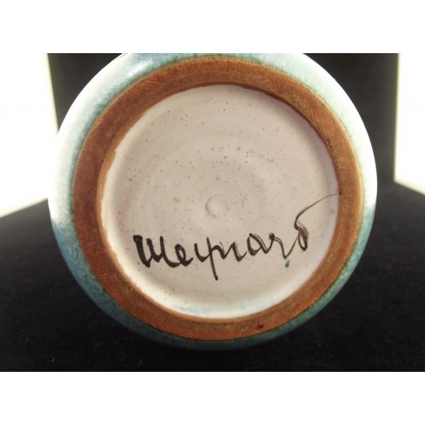 Vase ancien en céramique signé Meynard (Vallauris vers 1960), décor frises de motifs géométriques