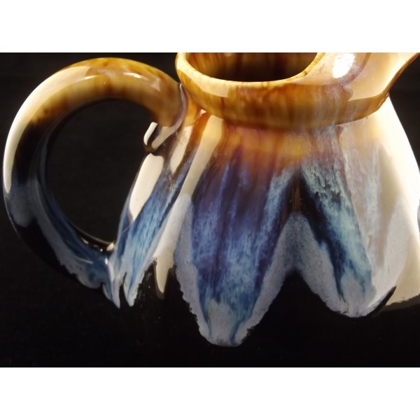 Pichet vintage en grés flammé de couleur bleue, numéroté 12, conçu pour retenir les glaçons lors du service.