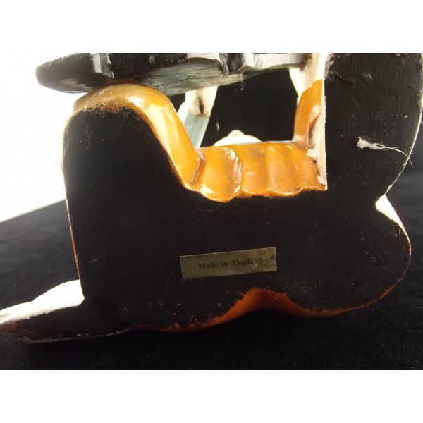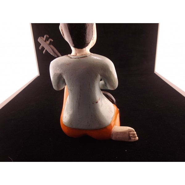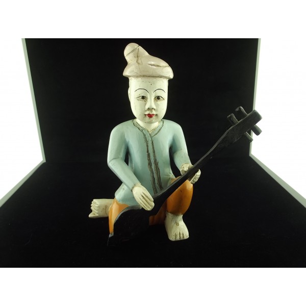 Statuette en bois sculpté polychrome musicien thaïlandais