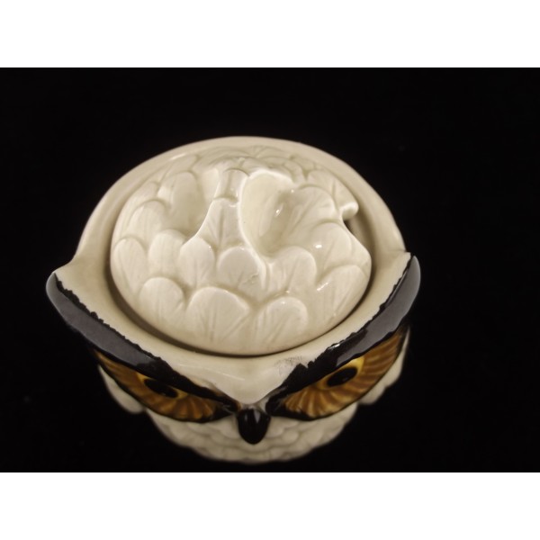 Ensemble salerons et moutardier faïence barbotine chouettes