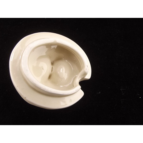 Dimensions : saleron longueur 5 cm, largeur 4 cm, hauteur max 5 cm, moutardier longueur 9 cm, largeur 7,5 cm, hauteur max 10,5 cm.