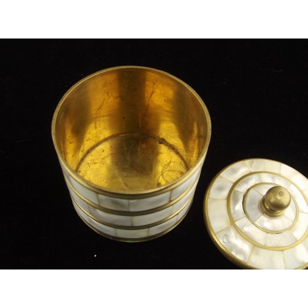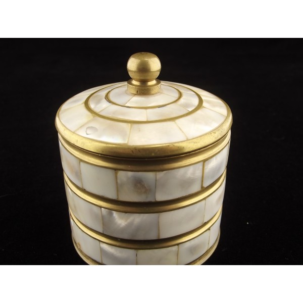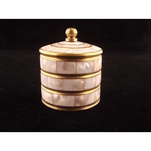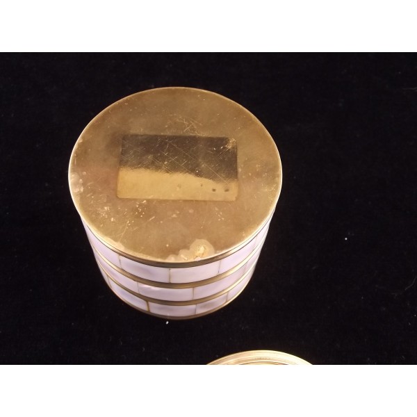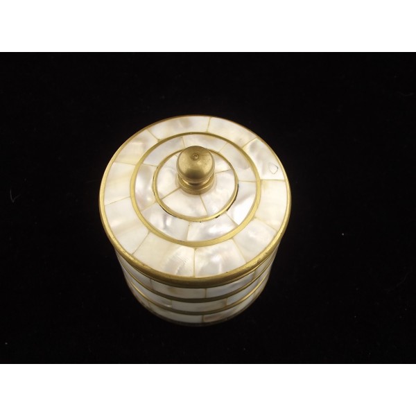 Vintage boîte à poudre/bijoux en laiton et nacre