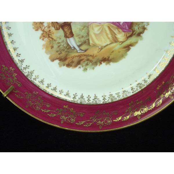 Assiette de décoration décor Fragonard en porcelaine de Limoges