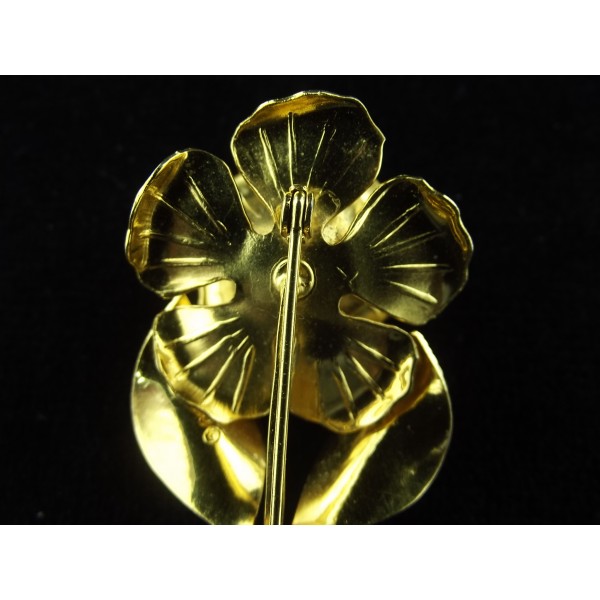 Broche vintage en forme de rose en métal doré signée Cerrito