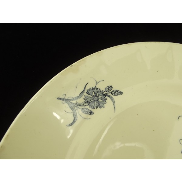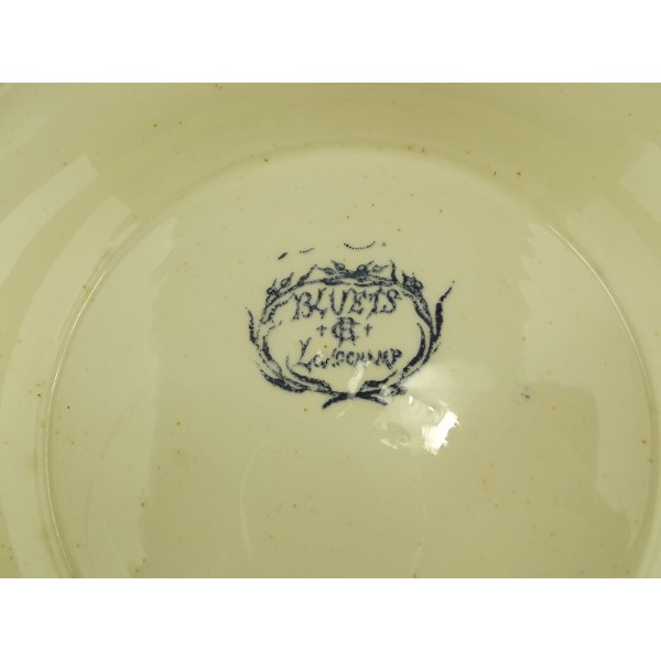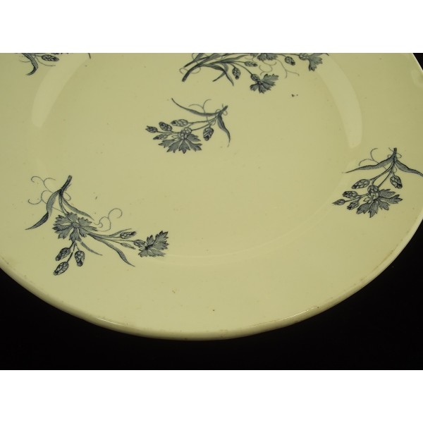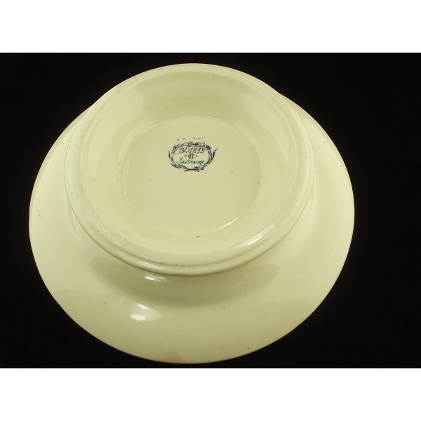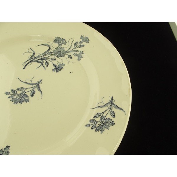 Adorable assiette sur pied présentoir à gâteaux modèle Bluets en faïence par Robert Charbonnier pour Longchamps, vers 1900.