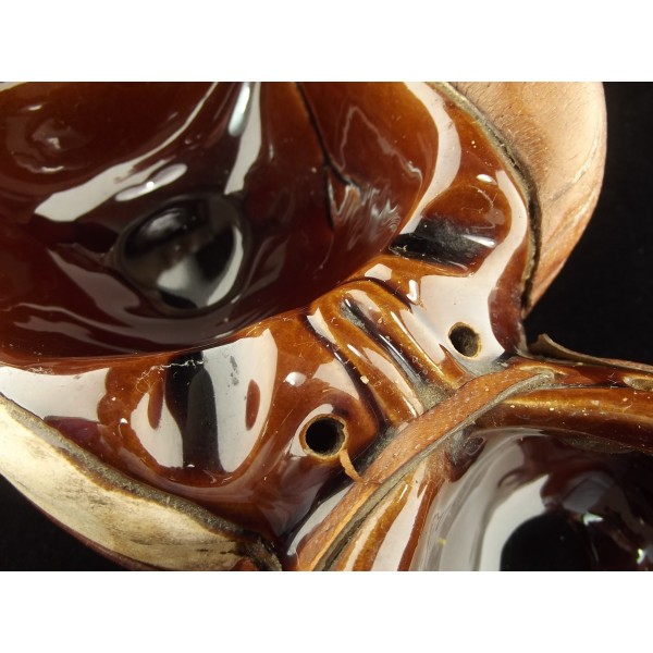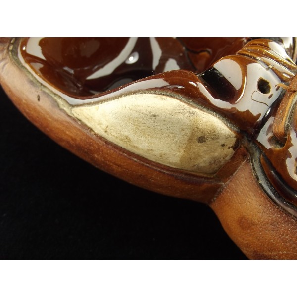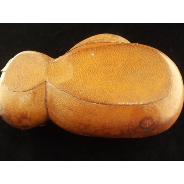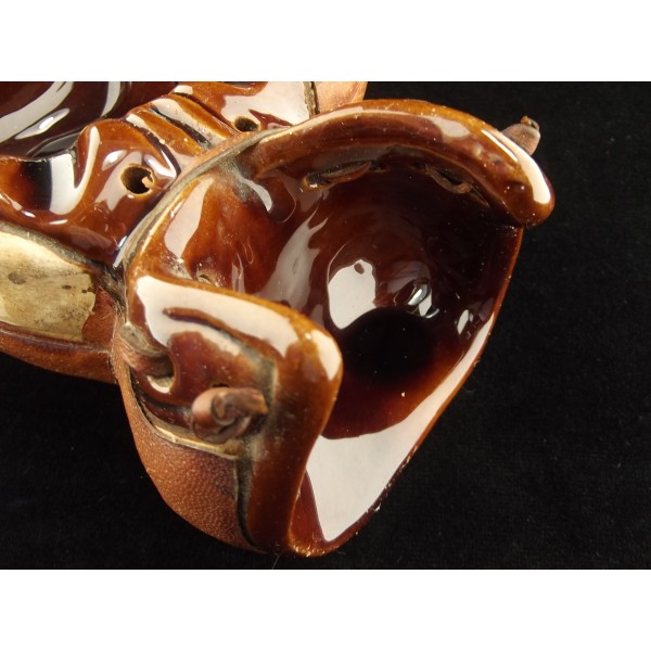 Très rare cendrier ancien en céramique et cuir, vers 1920, représentant un gant de boxe, probablement réalisé avec un ancien gant.