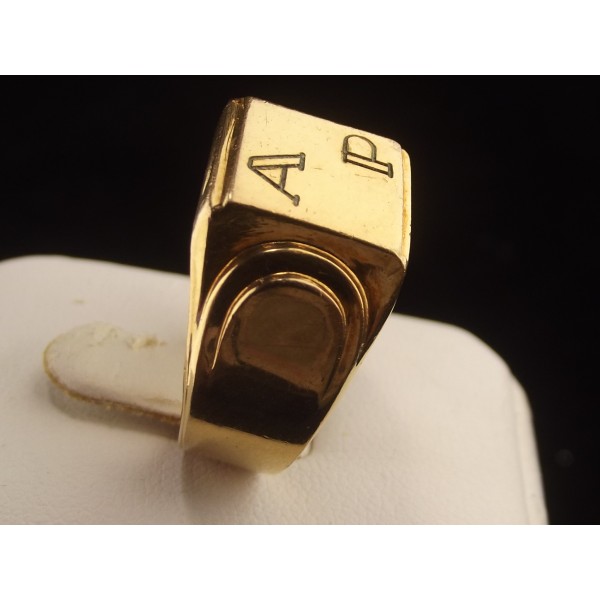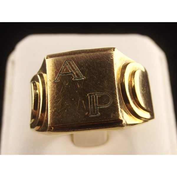 Bague chevalière vintage en plaqué or poinçon carré, de style art déco, portant sur le plateau les initiales A P.