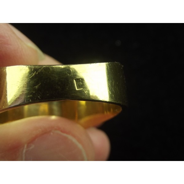 Dimensions : Tour du doigt 62, plateau 1,2 cm de côté, largeur anneau entre 0,5 et 1 cm, poids 8,89 grammes.