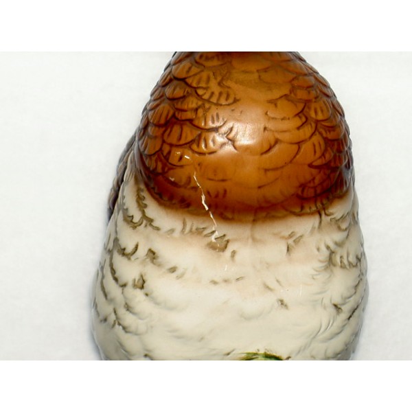 On note : une répération (très peu visible mais prise en photo) entre les pieds du canard et le socle.