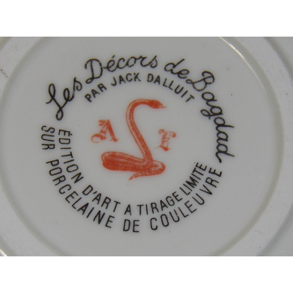 Plat à tarte en porcelaine de couleuvre estampillé les décors de Bagdad par Jack Dalluit