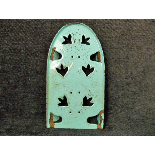 plaque repose fer à repasser en tole émaillée , plateau orné de découpes