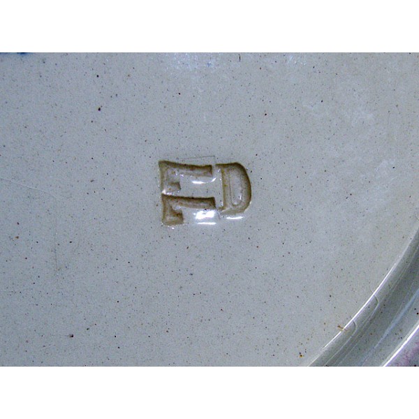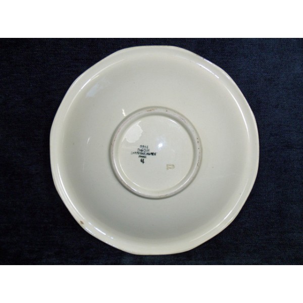 Grand plat creux (ou coupe) en faïence de Digoin Sarrequemines France, marqué 9214, bord à 12 pans, décor de style art déco (années 20)