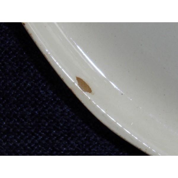 Bon état. On note, sous le rebord une très petite égrénure ainsi qu'un très léger fel de cuisson qui n'a pas traversé la matière.
