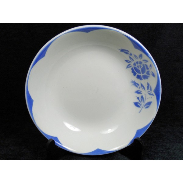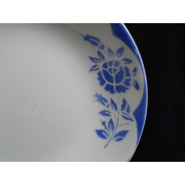 Assiette creuse en faïence Digoin-Sarreguemines des années 30. Modèle Corsica, à décor bleu. Bon état général, pas de cheveu.