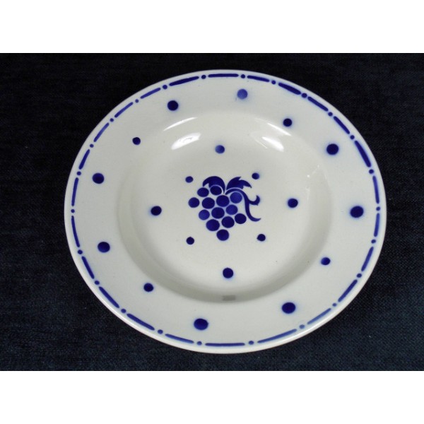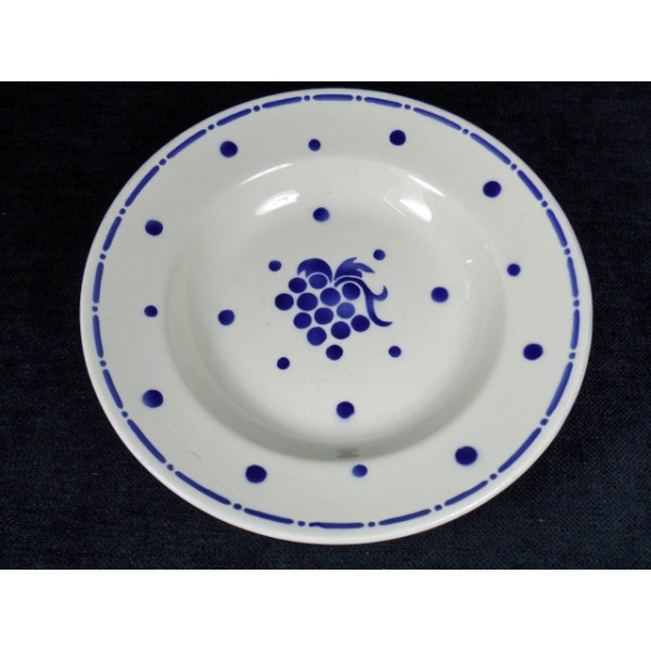 Ensemble de 10 assiettes creuses en faïence estampillées Moulin des Loups et Hammage, modèle Daunou, décor de grappes bleu.