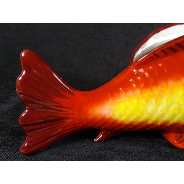 Poisson en porcelaine estampillé Limoges AF (André François) France, ouvrant dessus pour faire vase, début XXème.