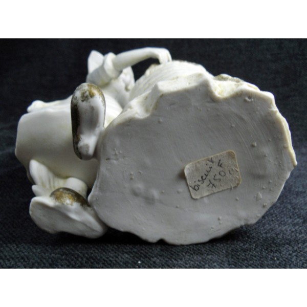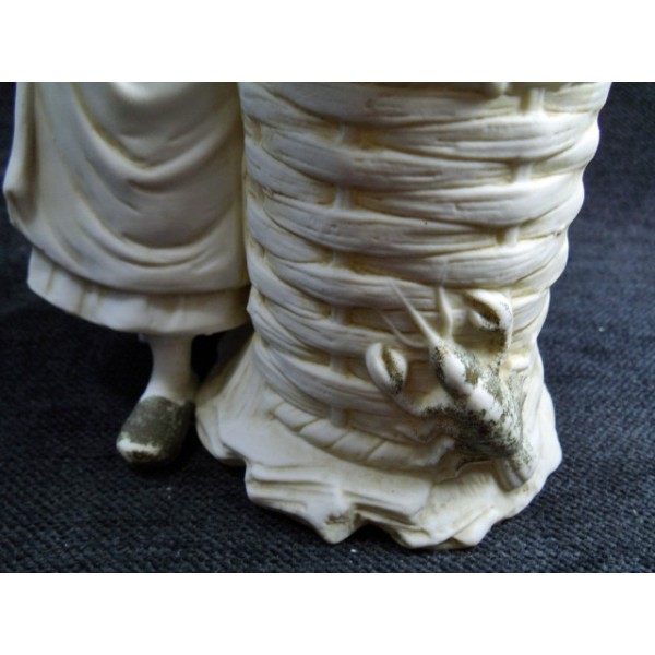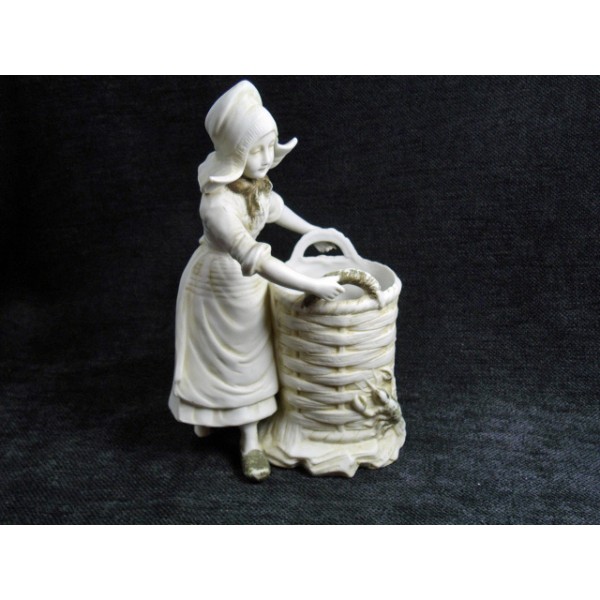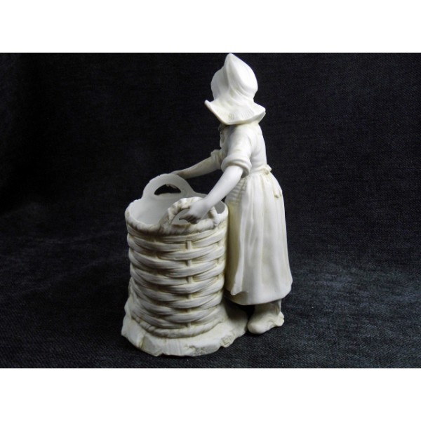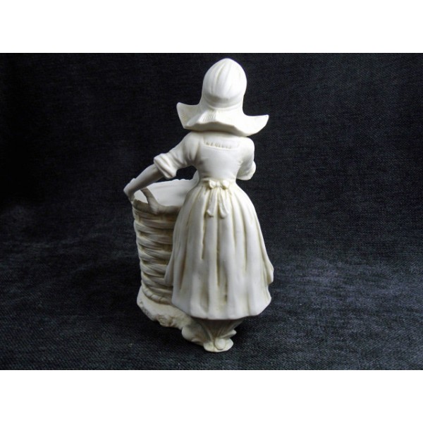 Sujet en biscuit représentant une pêcheuse hollandaise portant un panier