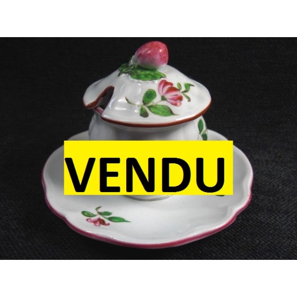 Moutardier en faïence dans le goût de Lunéville fin XIXème.