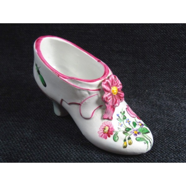 Soulier en faïence dans le goût de Lunéville. Objet de vitrine, fin XIXème.