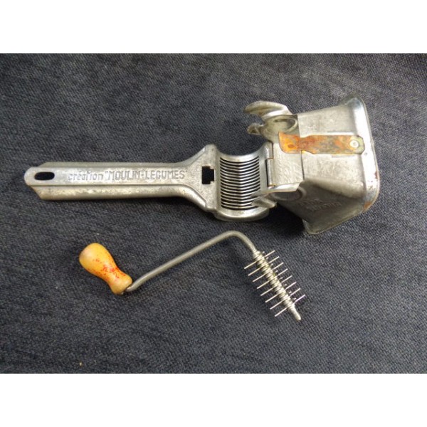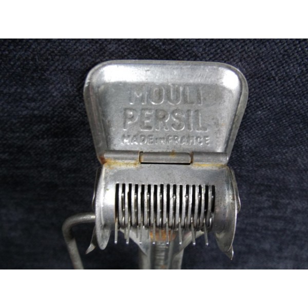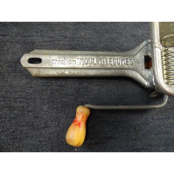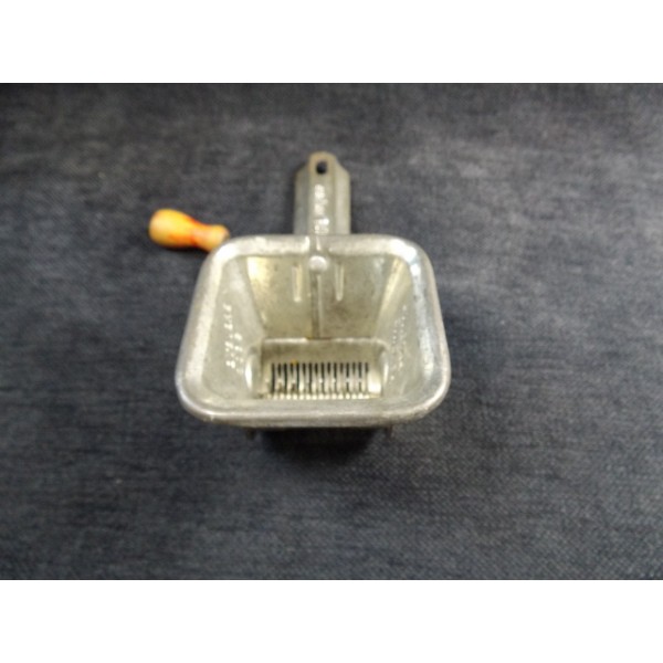 Râpe à légumes "mouli persil", création "moulin légumes", des années 50, petit manche en bois, made in france, en aluminium.