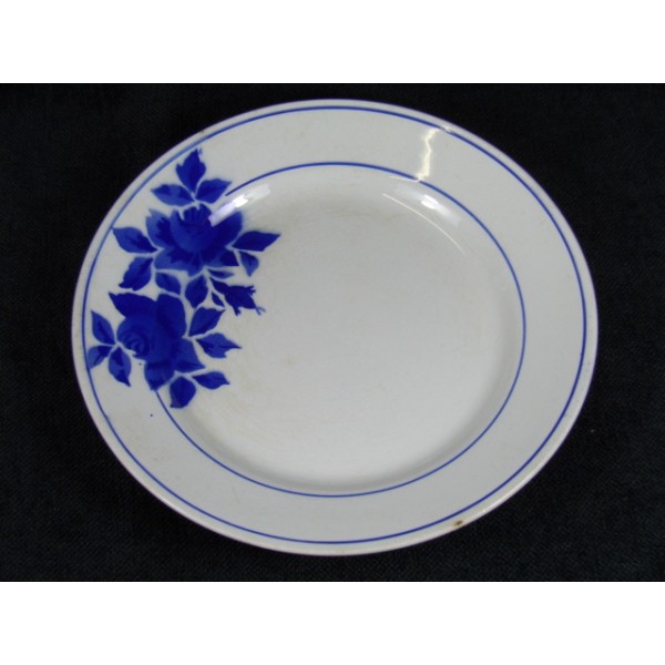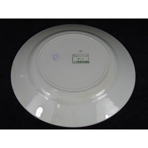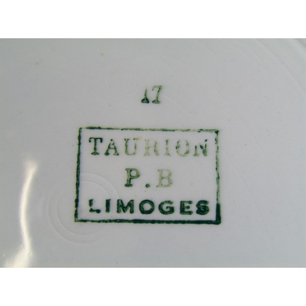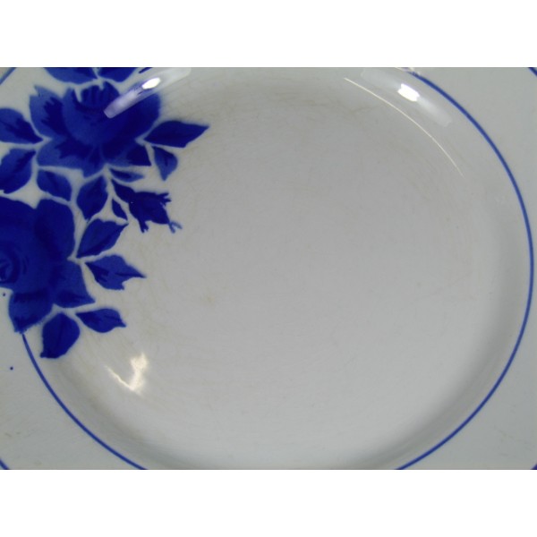 Assiette plate en faïence Taurion PB à Limges , décor fleur bleue, années 20/30