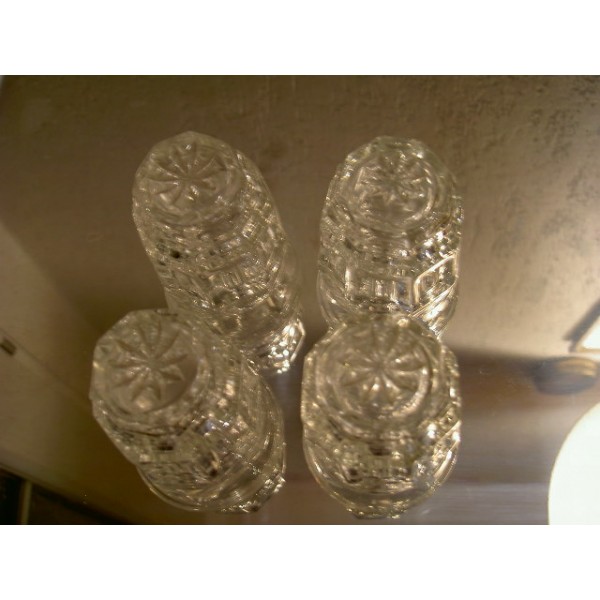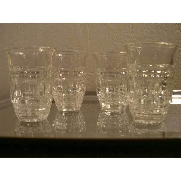 Très travaillés et très originaux ces 4 petits verres à vodka (ou liqueur), en verre moulé et fond taillé, anciens.