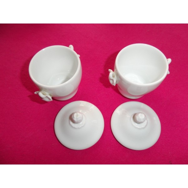 Ensemble de 2 petits pots à crème anciens en porcelaine blanche de Paris