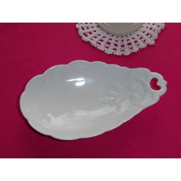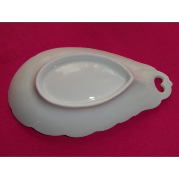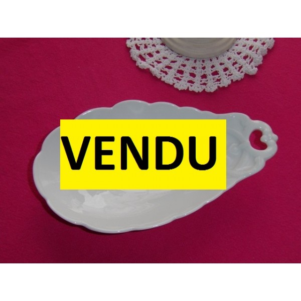 Jolie coupelle en porcelaine blanche ancienne, forme oblongue.