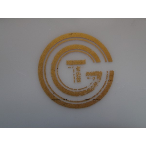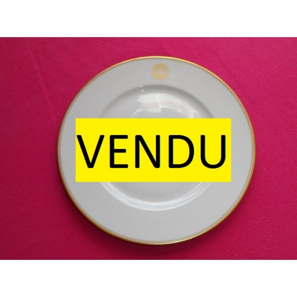 Assiette du Paquebot Normandie en porcelaine de Limoges fabriquée par Haviland et décorée par Jean Luce à Paris, années 30, décor filet doré et monogramme CGT (compagnie générale transatlantique).