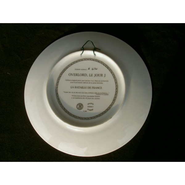 Assiette porcelaine commémorative 50ème anniversaire du débarquement tableau original d'Yves Thos avec le Général de Gaulle