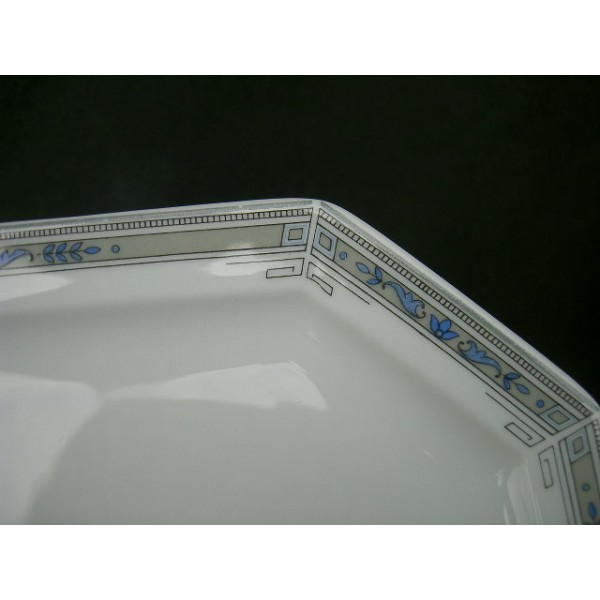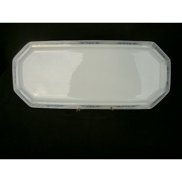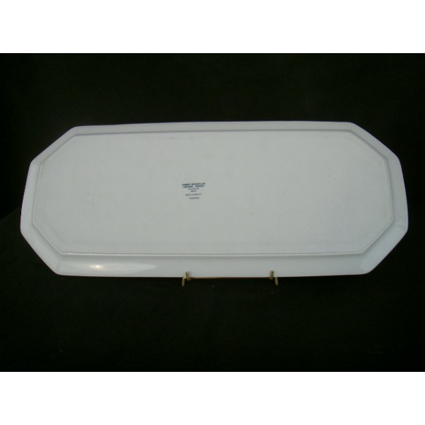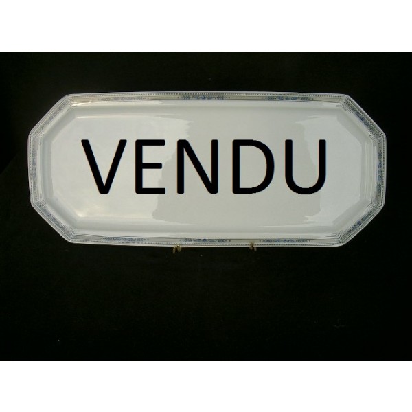 Plat à cake en porcelaine de Limoges estampillé Jammet-Seignolles, modèle Broadway, en parfait état. Forme octogonale, dimensions : 40cm x 17cm.