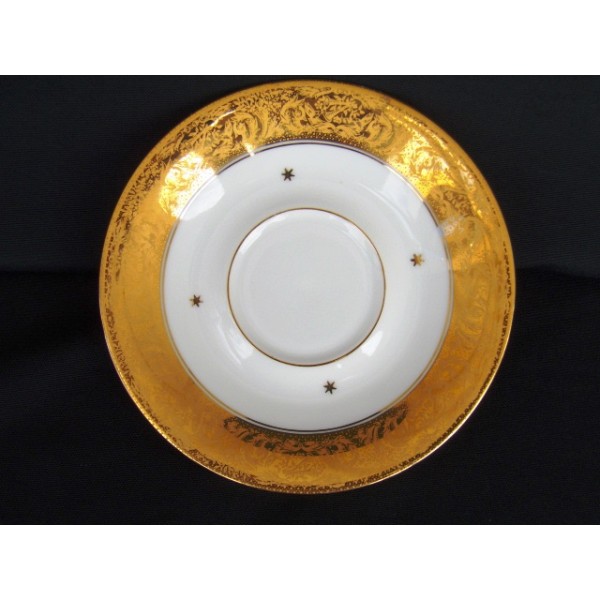 Bouillon en porcelaine de Limoges dans le goût du XIXème, décor productions Danifac, avec son présentoir de table (soucoupe)