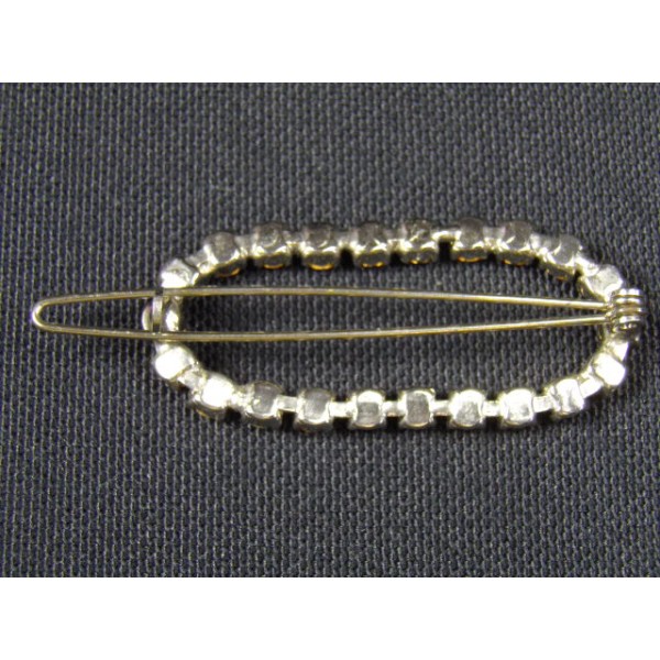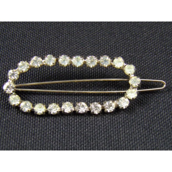 Barrette ancienne en métal argenté chromé, ornée de strass (22).