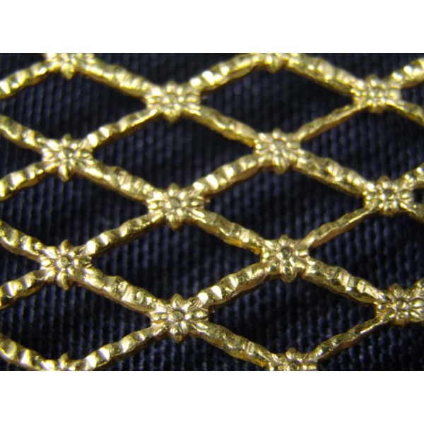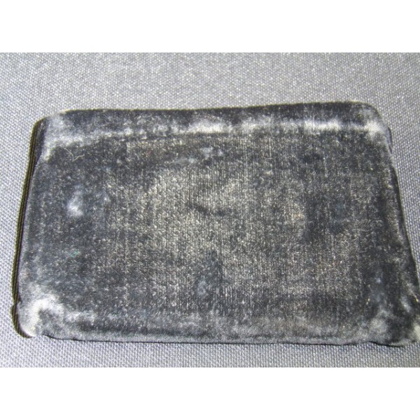 Boîte à carnet ou cigarettes en métal doré, grillagé, décor de demi-perles de verre bleu, dans son étui en velour noir, estampillée made in France.