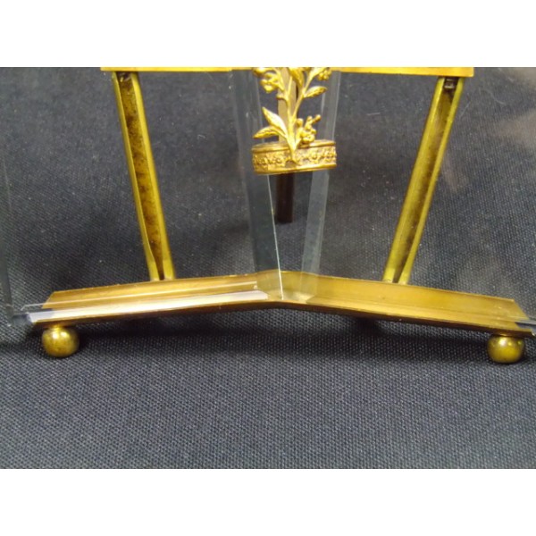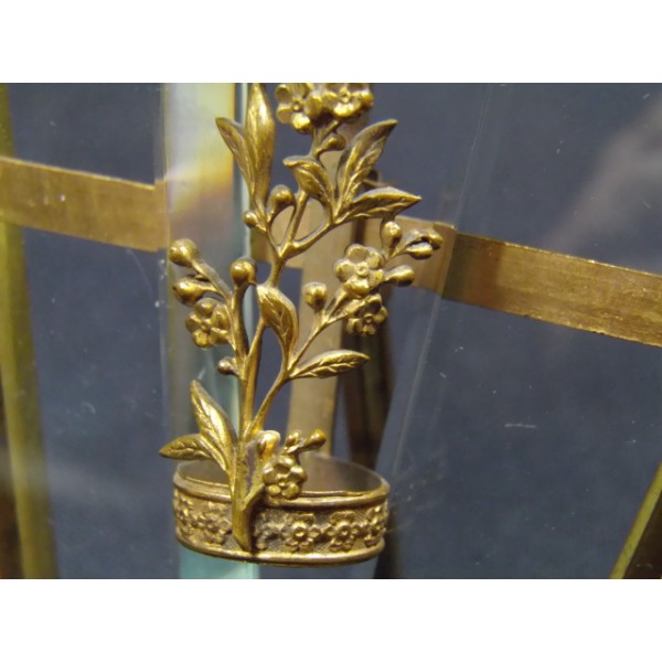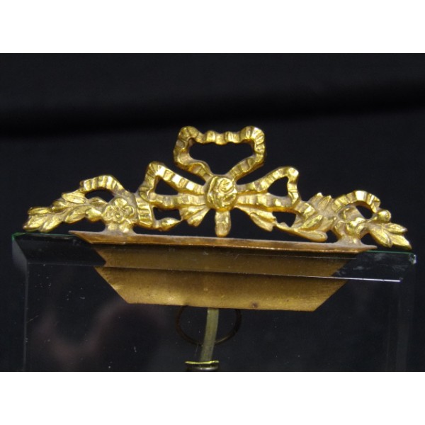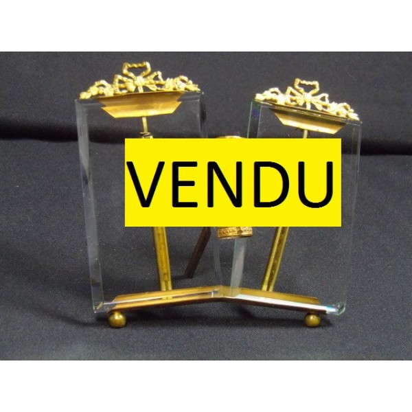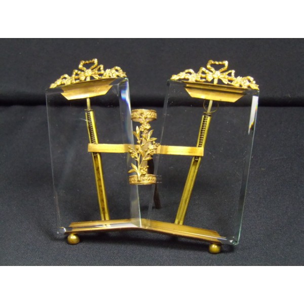 Porte-photos ou portraits ancien, montants en laiton (ou bronze), pour deux portraits, motif nœud, avec au centre un porte- bouquet de buis pour la dévotion.