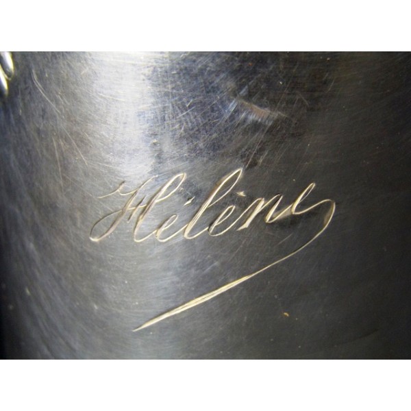 Timbale en argent massif, modèle à la coquille de style Louis XVI, prénom gravé Hélène.