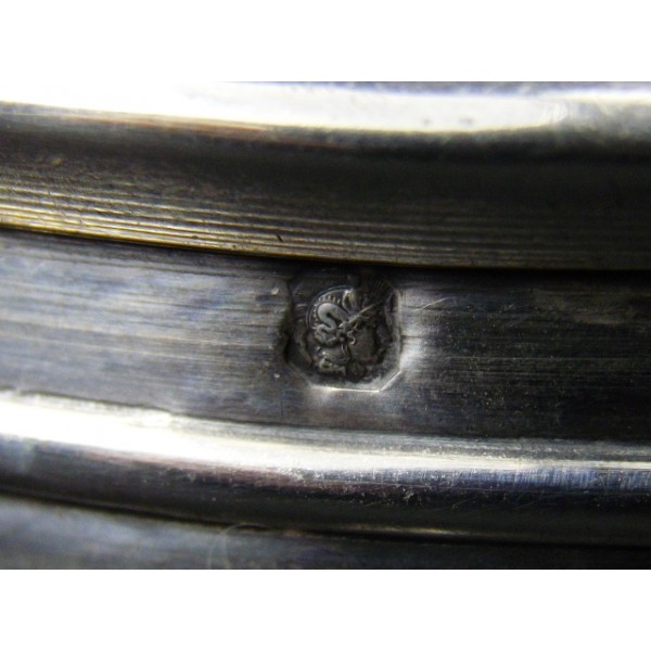 Bon état, on note des bosselages, 2 poinçons minerve 1er titre et un poinçon d'orfèvre,
