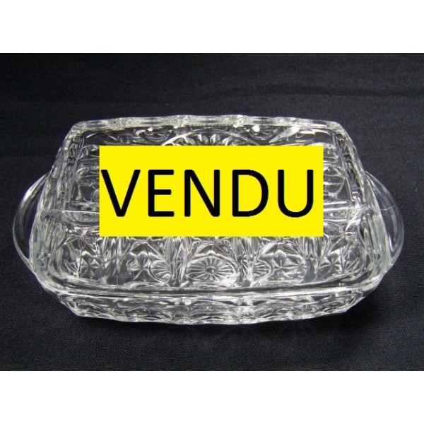 Beurrier en verre moulé des années 60/70, avec son couvercle, marqué made in France.
