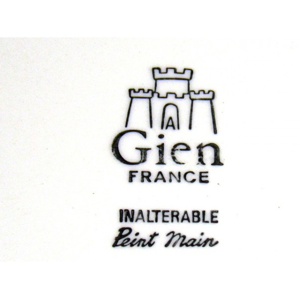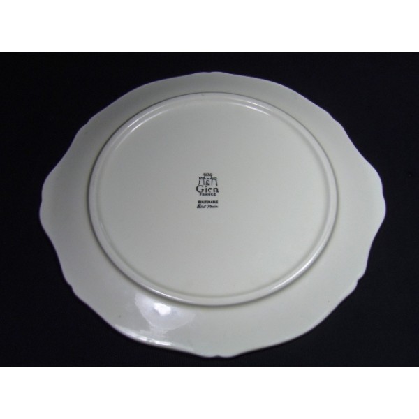 Plat à gâteau en faïence de Gien, décor peint à la main "Lorraine", à oreilles.