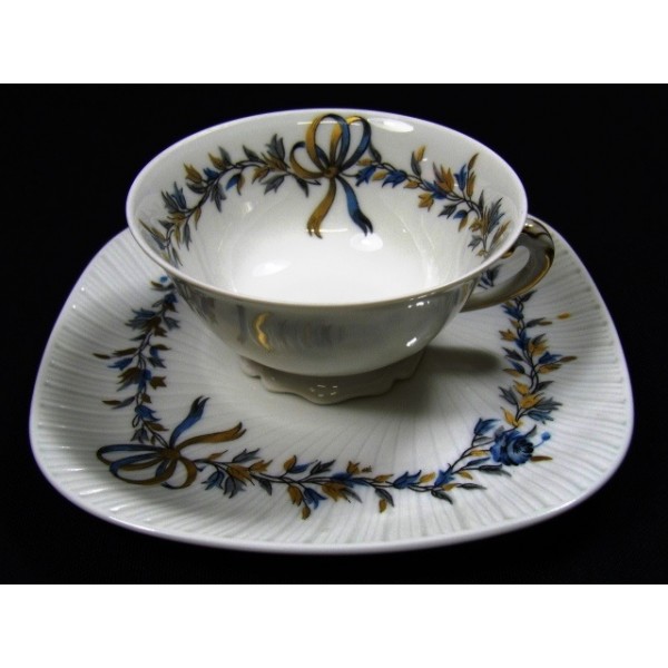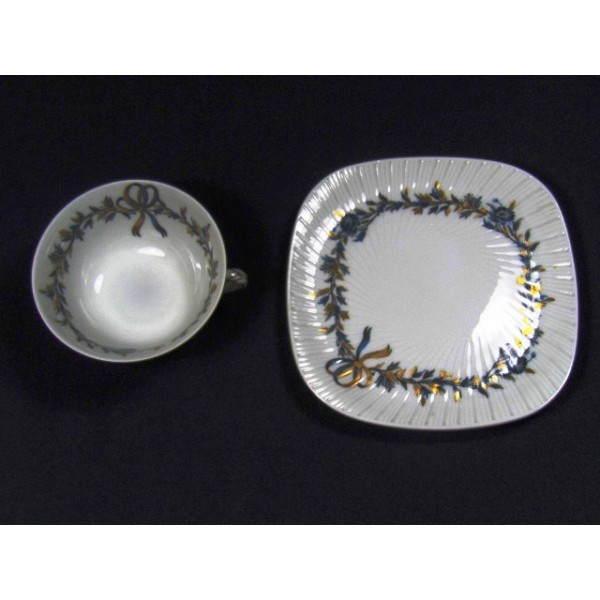 Tasse en porcelaine de Limoges, ancienne manufacture royale, joli décor bleu et doré.