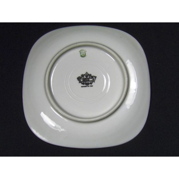 Dimensions : sous-tasse carré de 14,5 cm, tasse diamètre au col 9,2 cm, à la base 5 cm, hauteur 4,5 cm, contenance 12 cl.